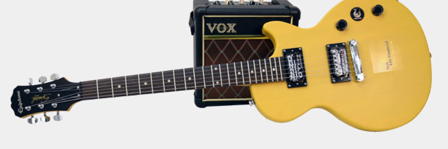 1 electric guitar + 1 amp + 1 power cable + 1 amp cable + 1 tuner + 1 instrument case + 1 amp cover.